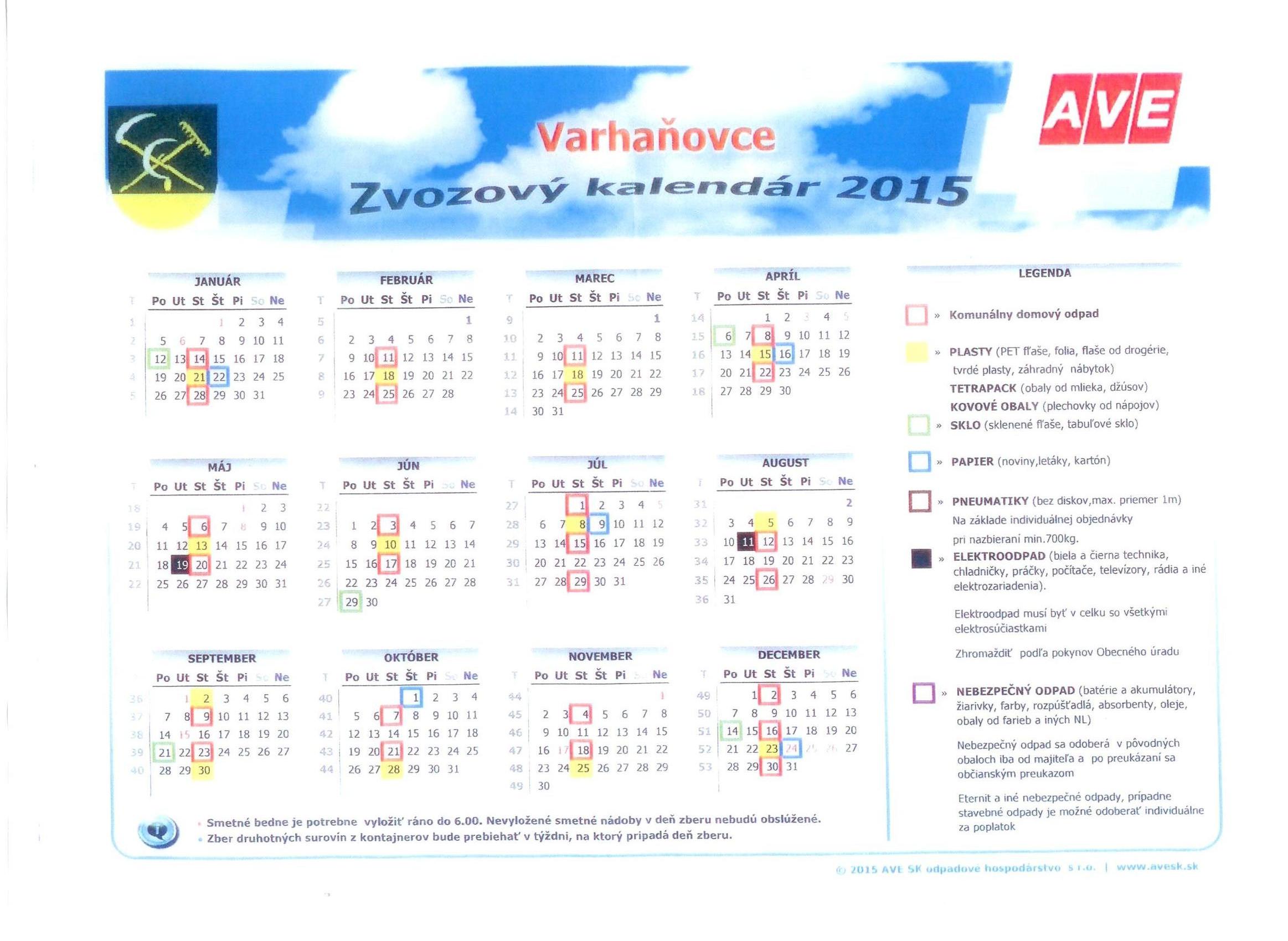 Zvozový kalendár 2015